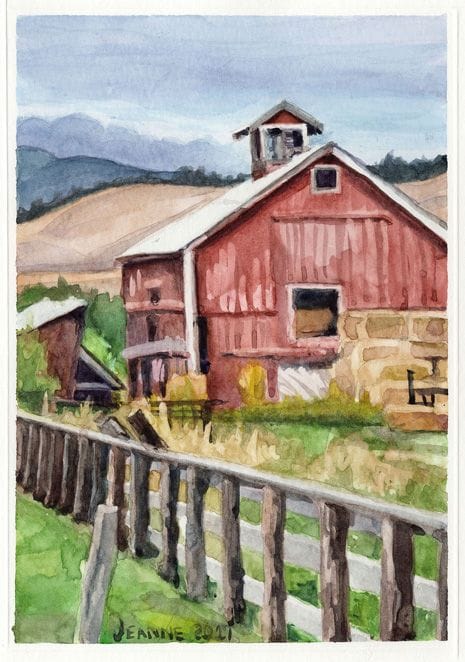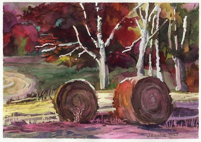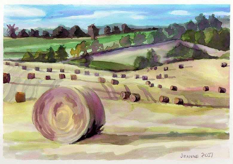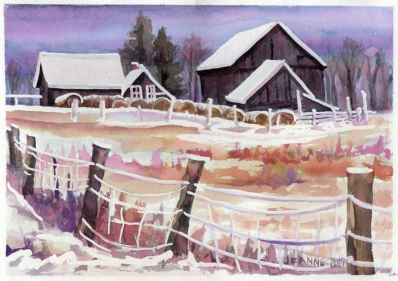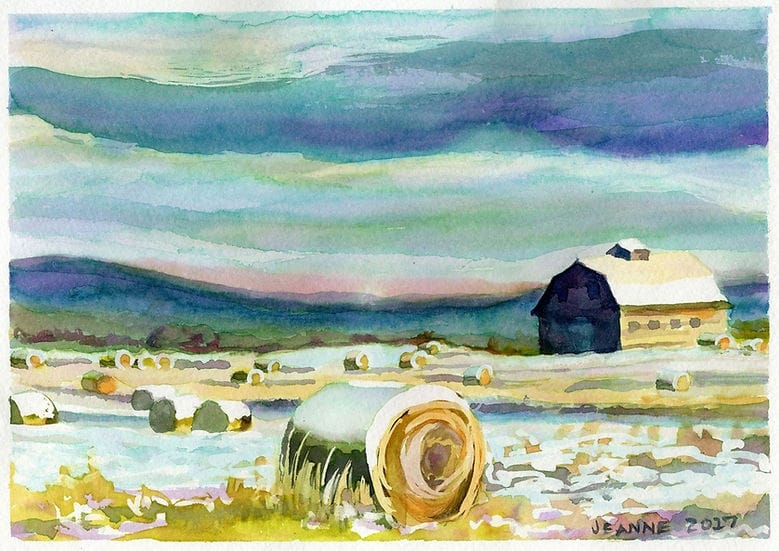 Bales of Hay in a Fenced Field on a Snowy Day Painting