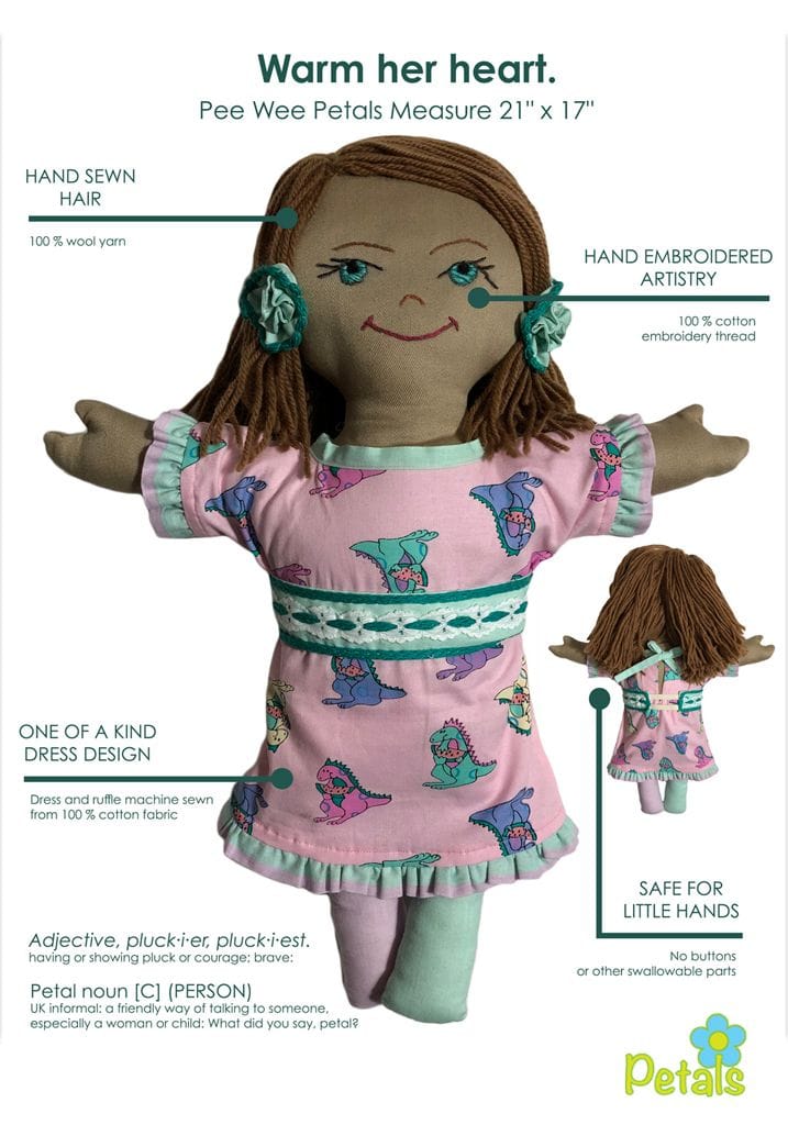 Petal Doll with Black Hair, Brown Eyes, Red Top and Polkadot Skirt