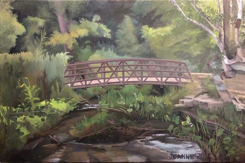 Walking Bridge over Battle Creek Bridge Near the Falls