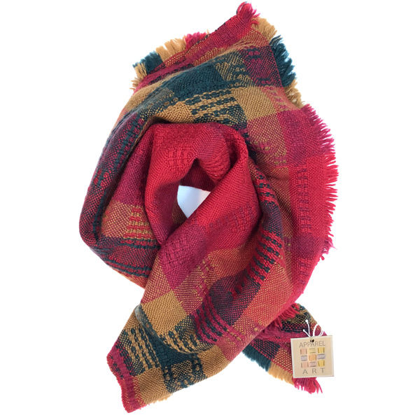 Square Scarf in Reds, Gold, and Green Light Weight Washable Wool
